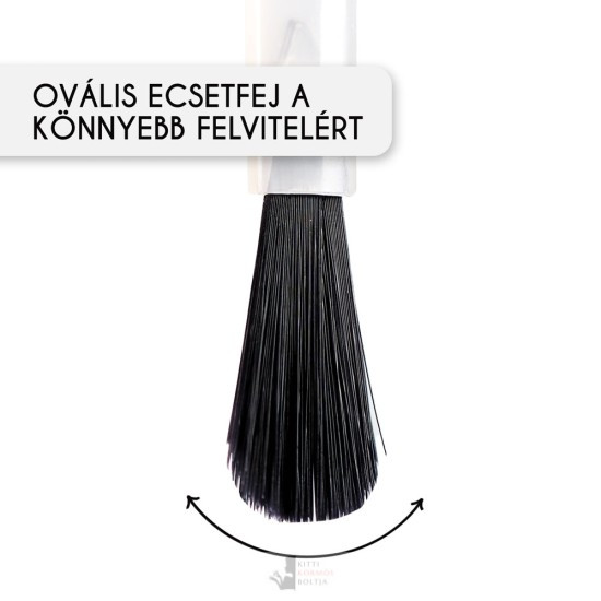 Egyedi fejlesztéssel kialakított ovális ecsetfej a könnyebb felvitelért