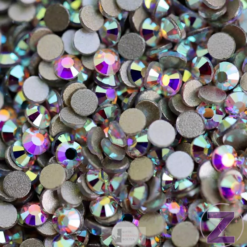 Színjátszó réteggel kezelt. Az „AB” elnevezést az északi sarki fény után kapta, vagyis az aurora borealis után, lévén, hogy ugyanolyan meghatározhatatlan színekben pompázik, mint a sarki fény a szikrázó téli táj felett. Méltán a legnépszerűbb, magas hőmérsékleten formára préselt, géppel csiszolt kristály a körmösök körében. Szikrázó csillogású, nagy fényerejű kő. Flatback, no hotfix, 8 oldalra csiszolt.