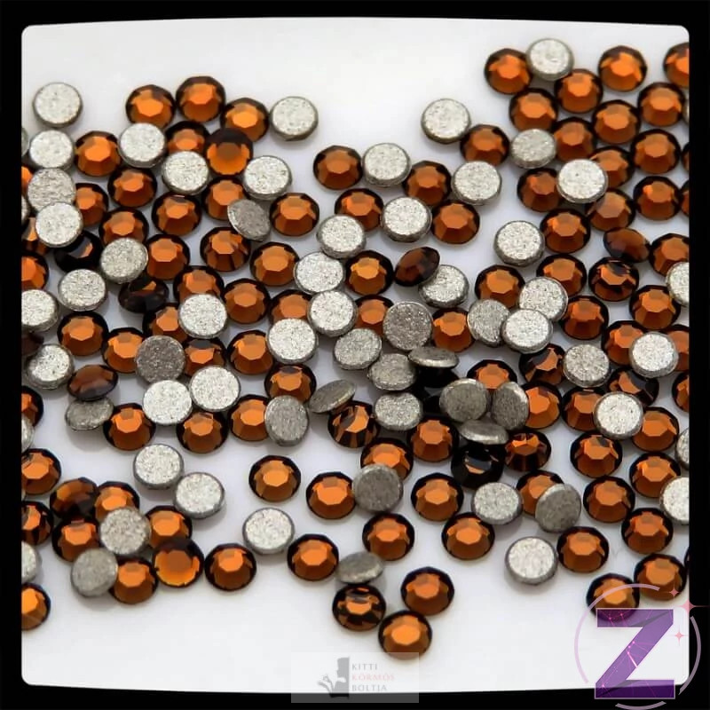 Swarovski strasszkő ss3 Smoked Topaz színben, mérete 1.35 - 1.50mm. Eredetileg, mint kvarc, Skócia hegyeiből származik ezért Skócia hivatalos ékköve is egyben. Aki kedveli a "füstös", sötétebb színátnyalatokat, annak elegáns hatásuk miatt mindenképpen ajánlott lehet. Élei pontosan illeszkednek, 8 fazettára csiszolva, aljukon ezüst fóliával ellátva.